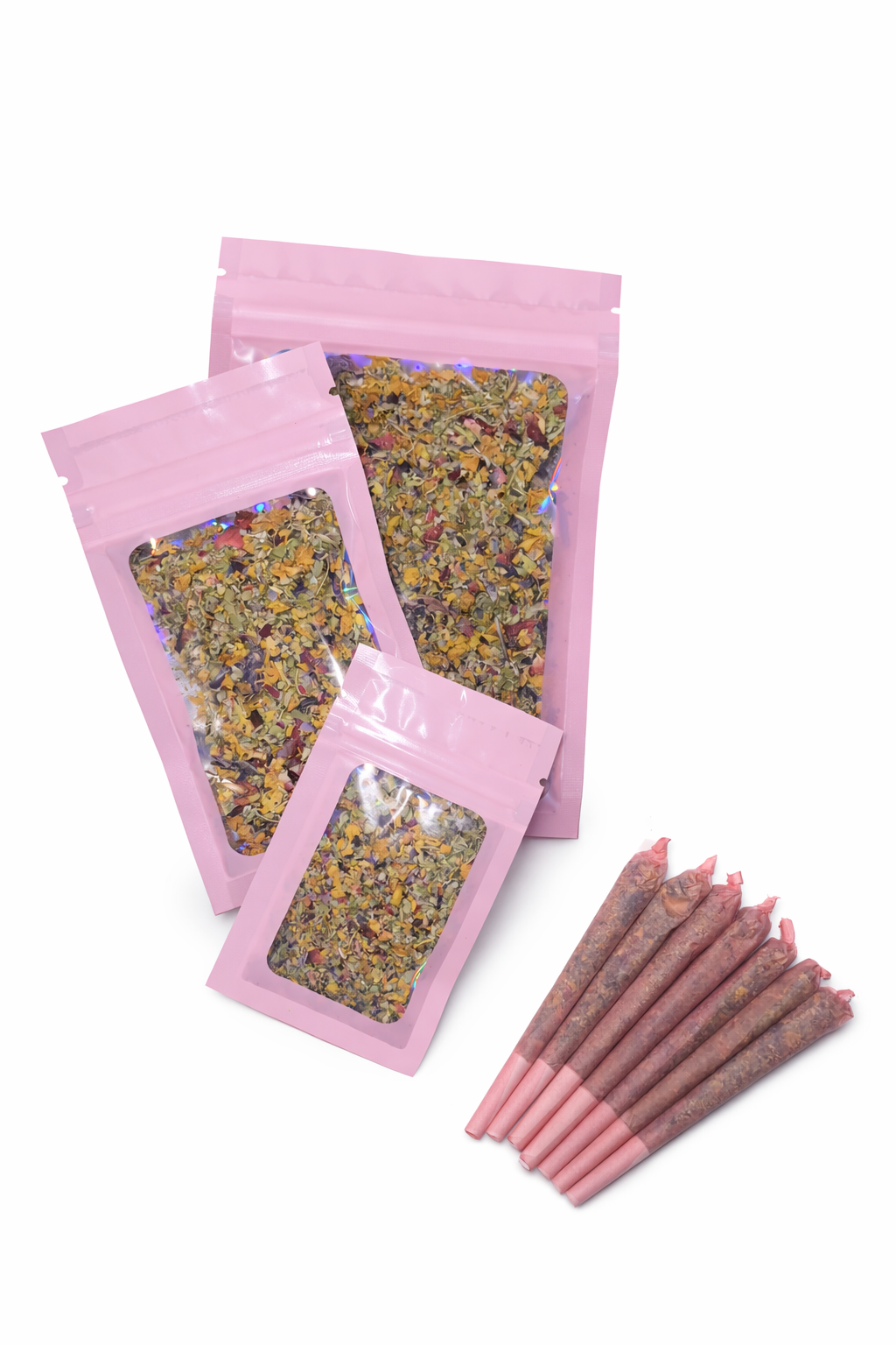 De natuurlijke kleuren van roze, paars en groen geven de blends een luxe uitstraling, terwijl de eigenschappen van de kruiden samen zorgen voor een harmonieuze en gebalanceerde beleving.